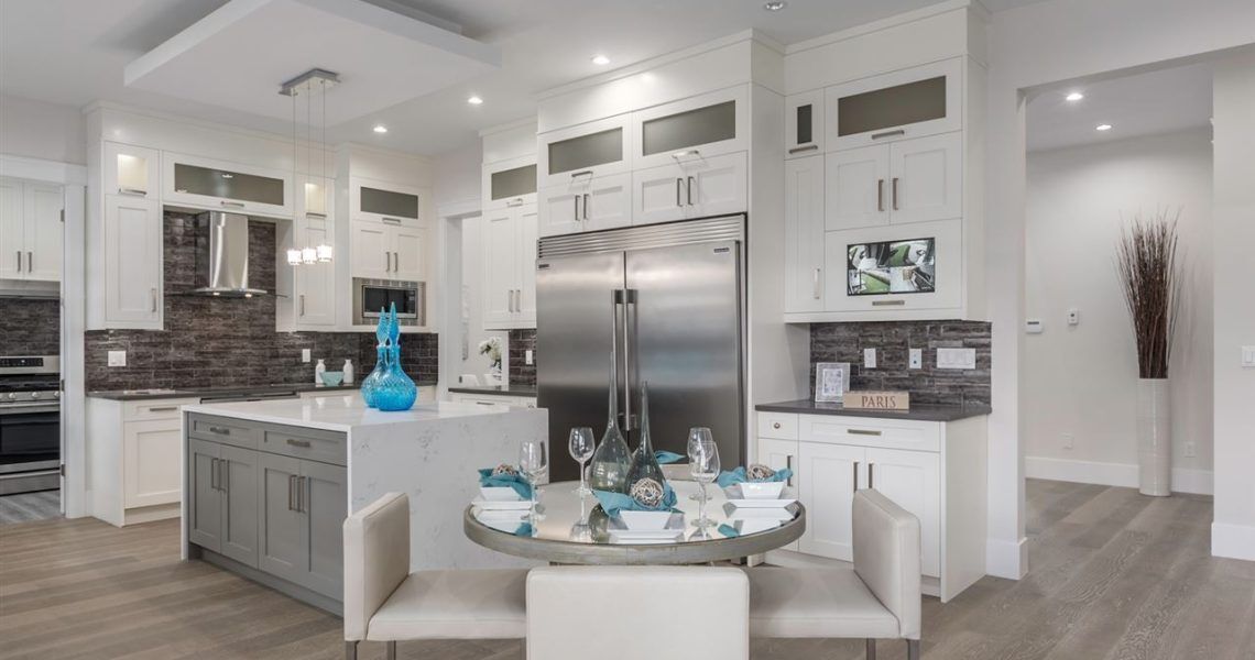 Gorgeous luxury home in Central Coquitlam has everything you need and more. 20ft high ceilings, custom glass railing, built-in appliances with waterfall bar, radiant heat throughout, and 2nd master on main floor+ office. The upper level offers a spectacular Master Suite with a stunning, oversized master bathroom with a view. Also, 3 bedrooms w/full bathroom and lounge. Lower level features Theatre room + wet bar, perfect for entertaining.